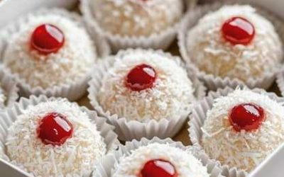 Boules de Neige à la Noix de Coco et Cerises Confites